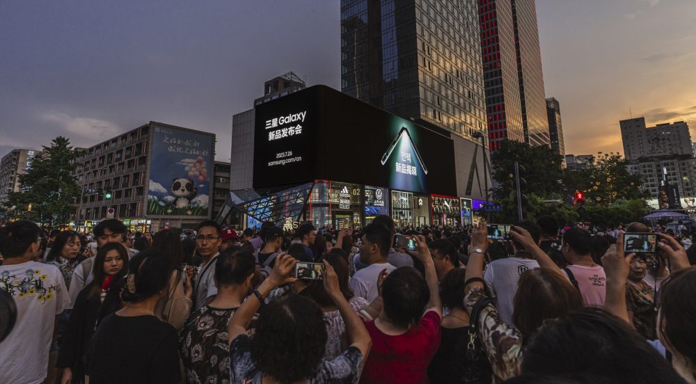 ▲ 8일(현지시간) 중국 청두 타이쿠리(Tai Koo Li) 지역의 ‘갤럭시 언팩 카운트다운(Countdown)’ 디지털 옥외광고