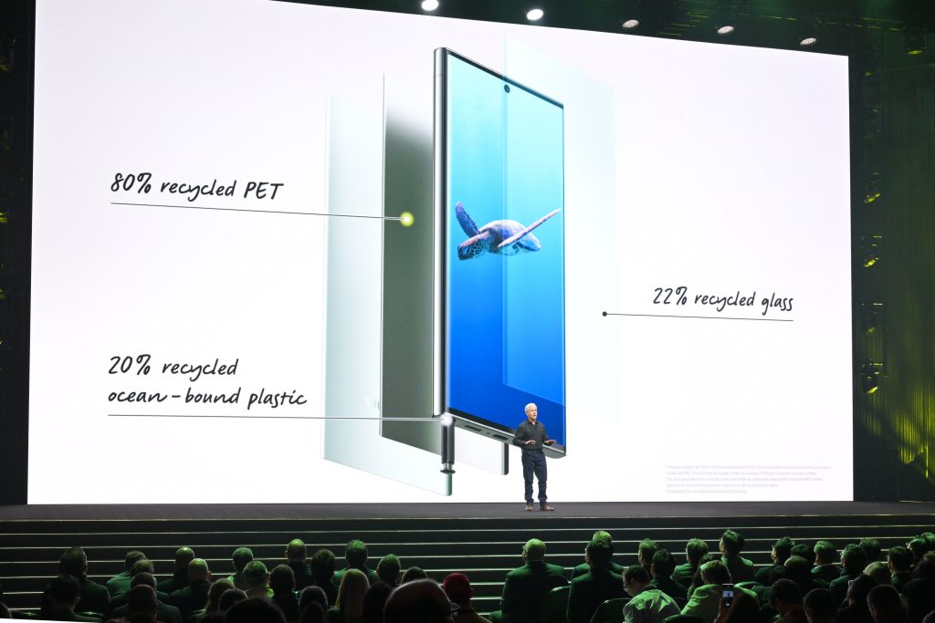 삼성전자는 이번 신제품의 패키지 박스부터 외관 디자인, 내부 부품까지 더욱 광범위하게 적용한 재활용 소재를 소개하며 지속가능성을 향한 노력을 다시 한번 약속했다. 또한, 제품의 긴 수명주기를 보장하기 위해 향후 4세대 OS 업그레이드와 5년간의 보안 업데이트를 지원한다고 발표해 관람객들의 공감을 얻었다.