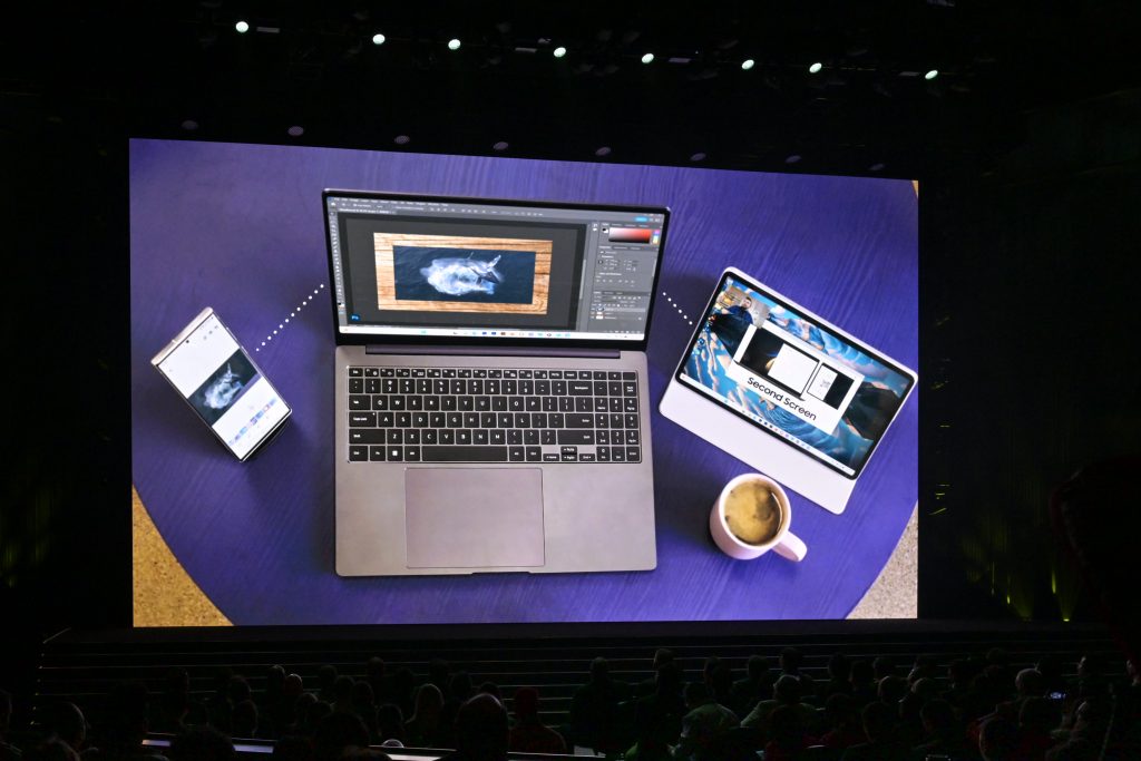 ▲ 삼성전자 미국법인 리테일 운영을 담당하는 라이언 베이버(Ryan Baber)는 갤럭시 사용자들의 멀티 디바이스 경험을 극대화하는 ‘갤럭시 북3 시리즈’를 소개했다. 특히, 역대 갤럭시 북 시리즈 중 최고 사양을 갖춘 ‘갤럭시 북3 울트라’는 높은 성능을 요구하는 그래픽 작업도 원활하게 수행한다.