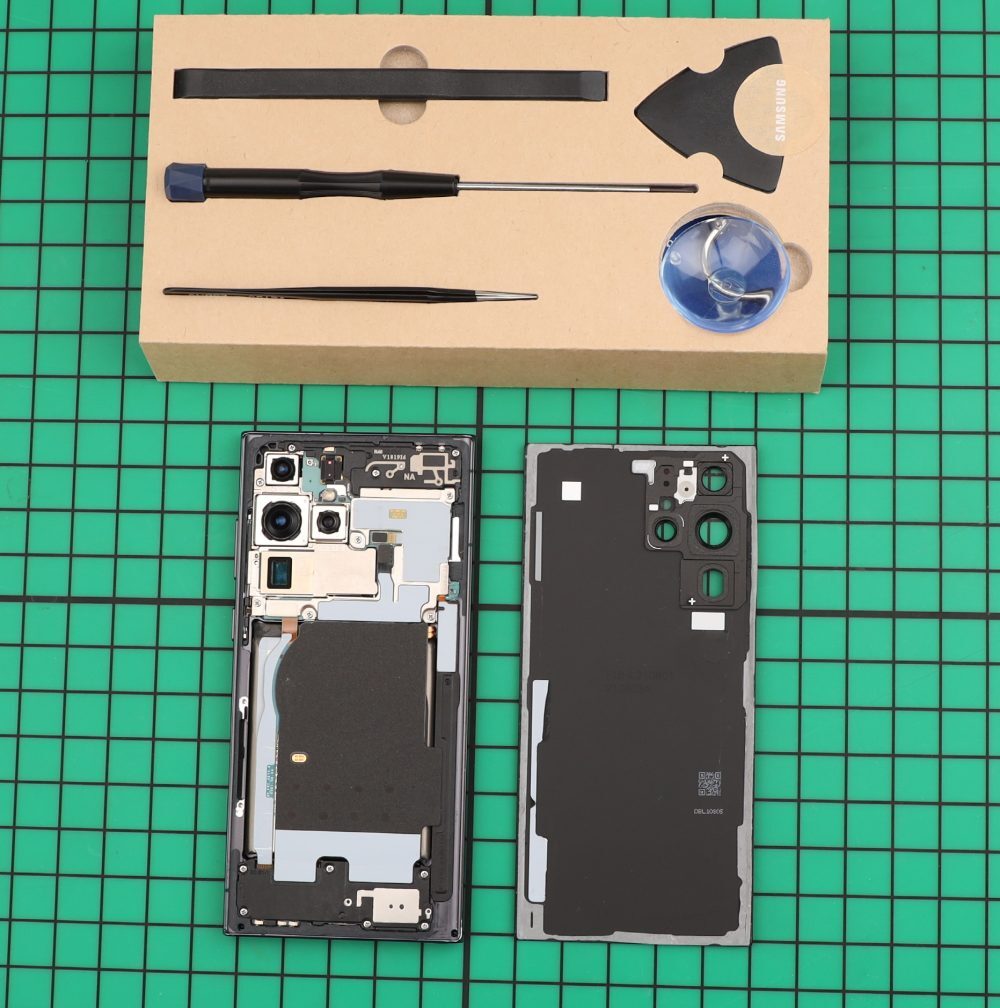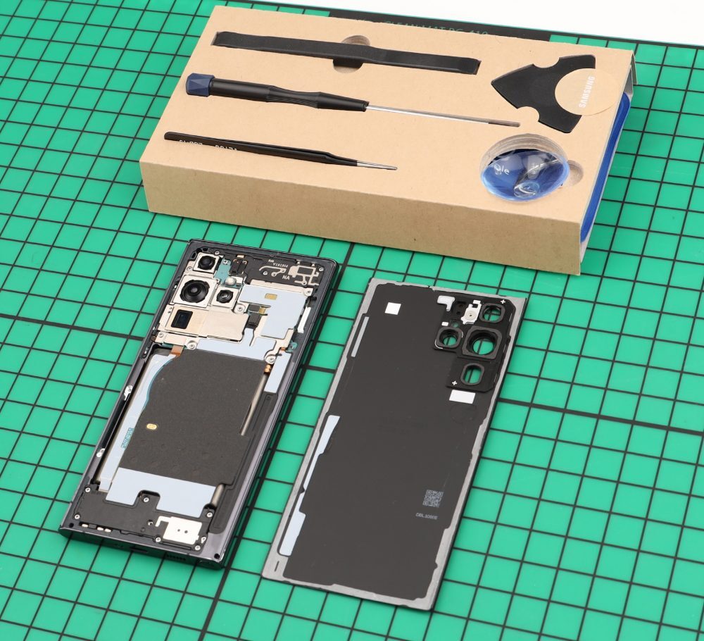 ▲갤럭시 자가 수리 도구와 갤럭시 S22 울트라 제품 사진