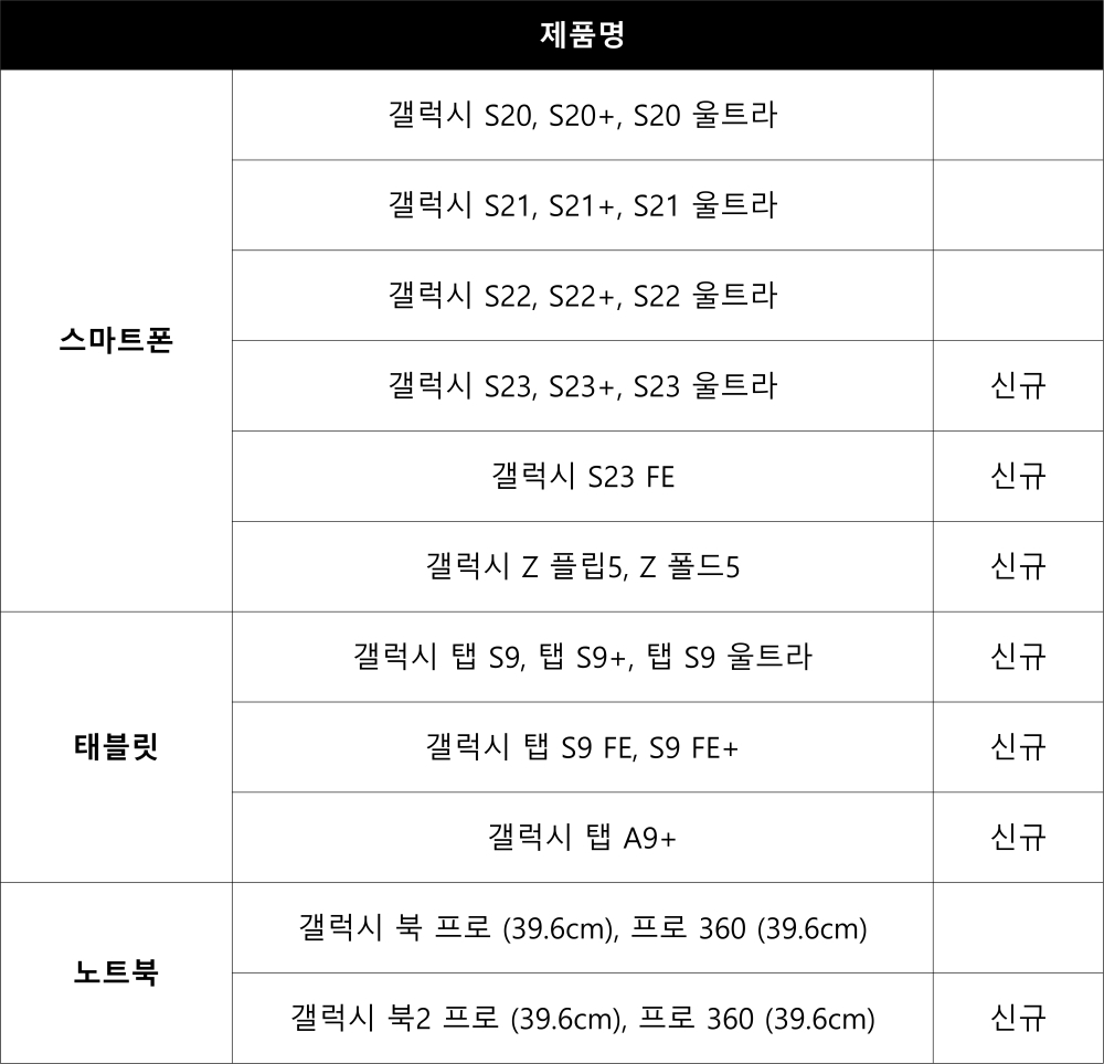 [2]갤럭시 Z 플립5∙갤럭시 Z 폴드5의 경우 커버스크린도 자가수리 대상 품목에 포함된다.