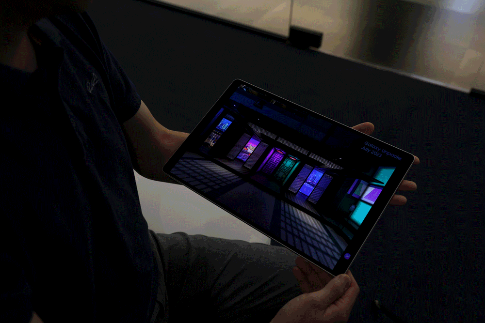 ▲ 갤럭시 탭 S9의 비전 부스터 기능을 시연하고 있는 모습