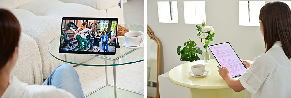 태블릿으로 영화나 드라마 등 영상 콘텐츠를 감상하기 좋아하는 사용자들에게 반가운 소식이 있다. 그동안 갤럭시 플래그십 스마트폰, 노트북에만 적용됐던 ‘다이나믹 AMOLED 2X’ 디스플레이가 갤럭시 탭 S9 시리즈의 디스플레이에 최초로 적용된 것.