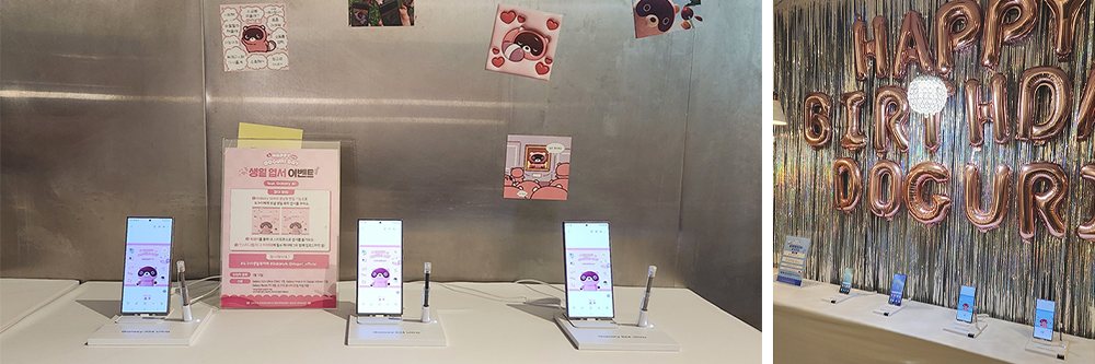 ▲ ‘도구리 생일 카페’ 성수점과 합정점에서 만날 수 있는 갤럭시 AI 체험존. 갤럭시 S24의 다양한 AI 기능을 재밌게 체험할 수 있는 이벤트들이 마련됐으며, 오는 28일까지 운영된다.