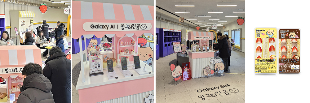 갤럭시 S24는 10대들에게 더욱 가까이 다가가기 위해 ‘망곰이’와 컬래버를 통해 에버랜드에 있는 CU 플래그쉽 매장에 AI 체험존을 오픈하였으며 갤럭시 AI를 만난 망곰이 디저트 2종을 출시하였다.