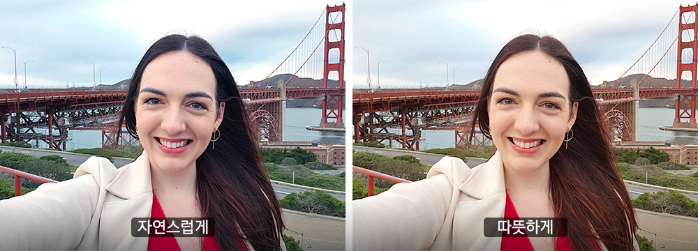 ▲ 셀피 촬영할 때 ‘자연스럽게’와 ‘따뜻하게’ 셀피톤 비교 모습