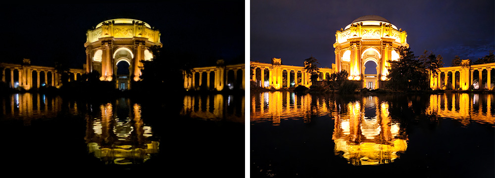 Expert RAW 앱으로 찍은 원본(RAW) 파일에는 풍부한 컬러 정보가 담겨 있다. 이는 ISO, 셔터 속도, 초점 등을 직접 조정하며 원하는 느낌을 구현하는 것과 함께 후보정 작업에서 자유도를 높인다. 빛의 노출이 과한 부분은 줄이고 어두운 부분에 가려져 있던 디테일을 살려낼 수 있는 것이다.
