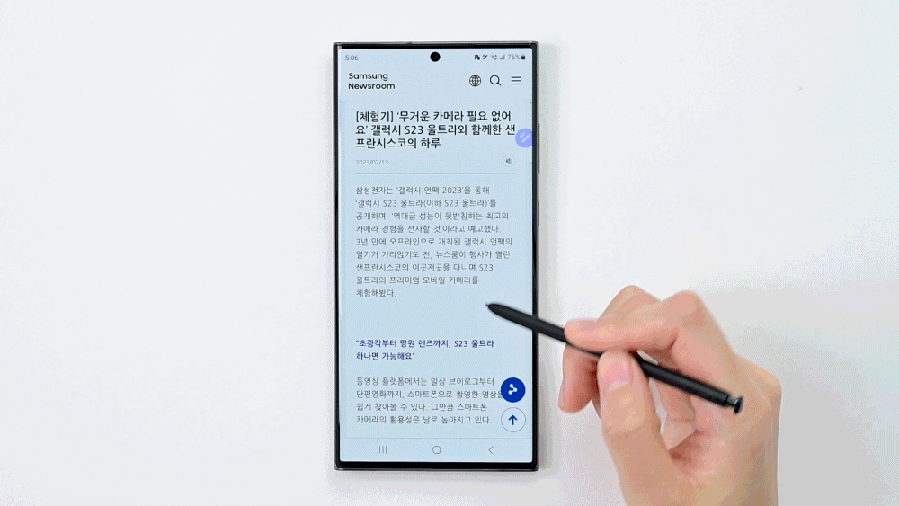 프리미엄 스마트폰 시장의 새로운 패러다임으로 부상한 갤럭시 S23 울트라를 뉴스룸이 직접 체험해봤다.
