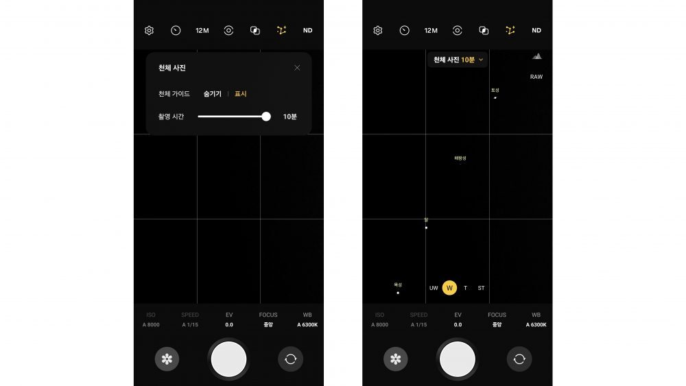 ▲갤럭시 S23 울트라의 Expert RAW 앱 천체 사진 모드 작동 모습