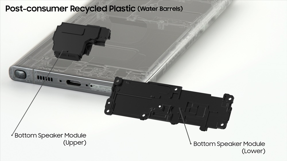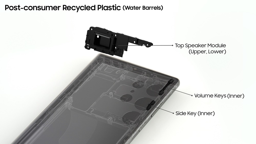 ▲ 갤럭시 S23울트라에 적용된 폐생수통 재활용 플라스틱 부품