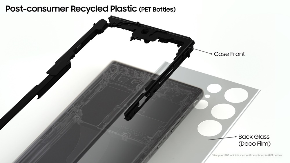 ▲ 갤럭시 S23울트라에 적용된 폐페트병 재활용 플라스틱 부품