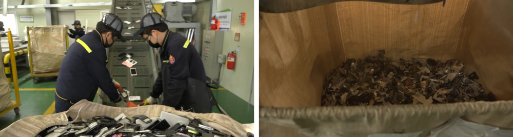 파쇄된 폐휴대폰은 자원 추출 전문 기업으로 전달된 후, 재활용 소재로 변환돼 다양한 제품에 활용된다.
