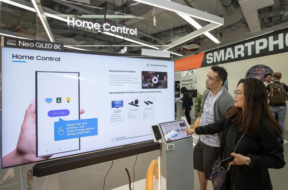 ▲ 독일 베를린 ‘카우프하우스 데스 베스텐스(Kaufhaus des Westens)’ 백화점에 위치한 삼성전자 프리미엄 체험존에서 스마트싱스를 체험하고 있는 모습