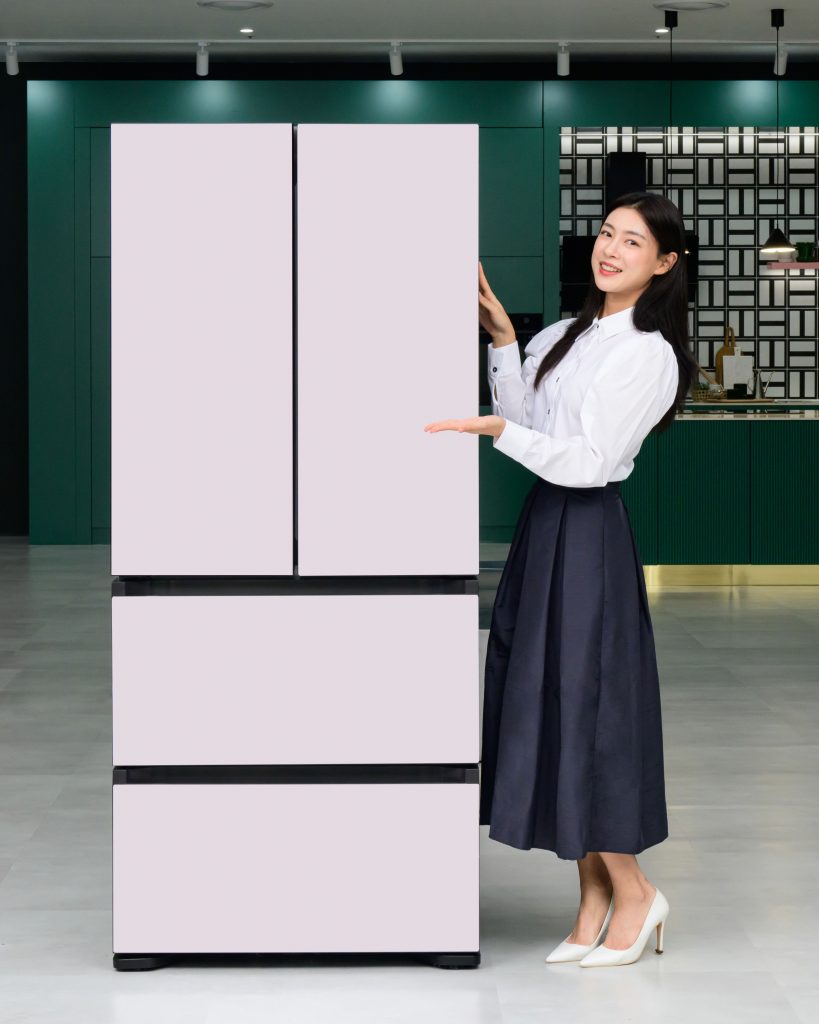 비스포크 김치플러스 4도어 제품은 총 19가지 종류의 패널을 기본 운영하고, ‘프리즘 컬러’ 360종에서 선택 주문하는 것도 가능하다.