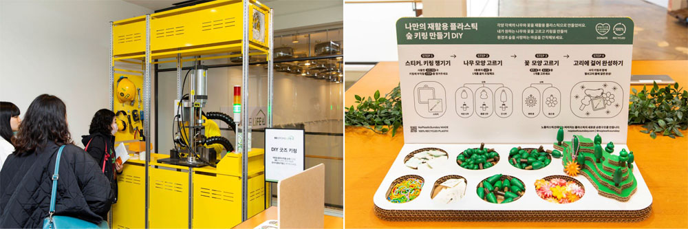 이 밖에도 다회용기 사용, 재활용 플라스틱을 활용한 굿즈 만들기 이벤트 등 미디어데이 행사장에는 환경을 생각한 제품들로 참석자들의 이목을 끌었다.
