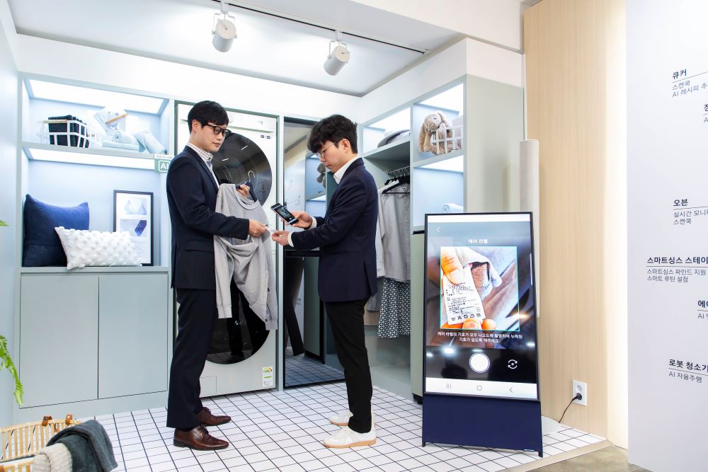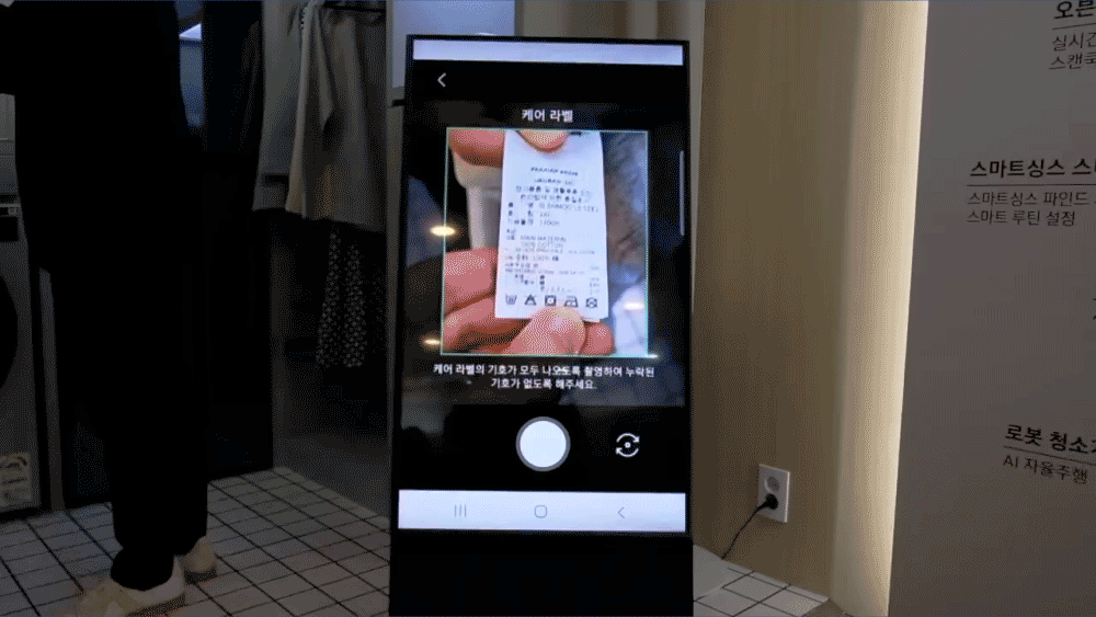 ▲ 비스포크 그랑데 AI 세탁기·건조기의 ‘AI 스캔’ 기능은 옷에 부착된 케어 라벨을 인식해 옷마다 최적의 세탁 코스를 추천해준다.