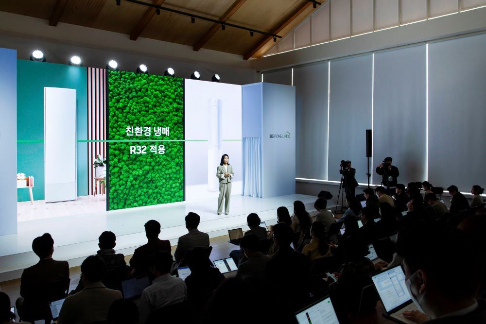 ▲ 비스포크 라이프 미디어데이에서는 냉매 R32, 비스포크 냉장고 신제품에 사용된 바이오 플라스틱 소재, 솔라셀 리모컨, 에코 패키지 등 지속가능성을 위한 삼성전자의 다양한 노력이 소개됐다.