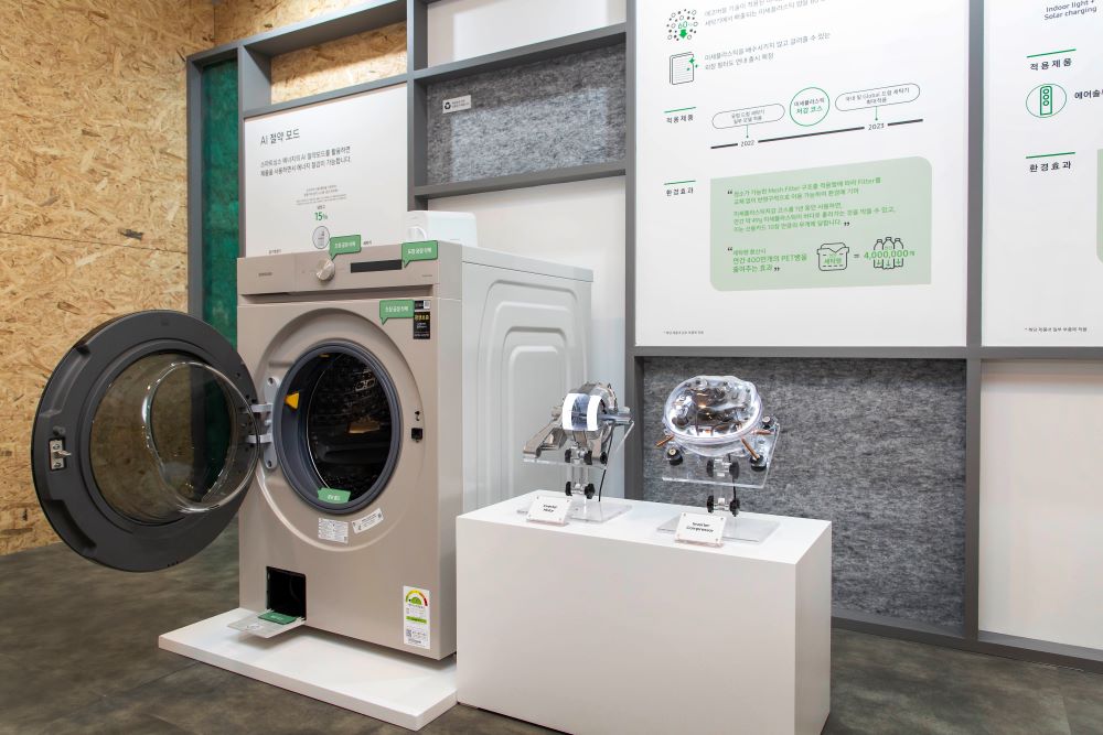 비스포크 가전의 해양 미세 플라스틱 문제 해결을 위한 노력으로 올 2월 파타고니아와 협업해 국내 최초로 출시한 미세 플라스틱 배출 저감 코스 세탁기 ‘비스포크 그랑데 AI’도 소개되었는데, 연간 줄일 수 있는 미세 플라스틱의 양이 PET병 약 400만 개에 달할 것[1] 이라는 발표 내용에 참석한 미디어들도 높은 관심을 보였다.
