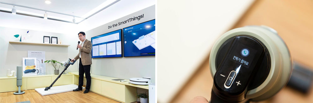 ▲ AI 가전 대열에 새롭게 합류한 비스포크 제트 AI는 청소할 바닥을 알아서 감지해 흡입력을 조절하고, 모바일과 연동을 통해 전화 수신도 가능하다.