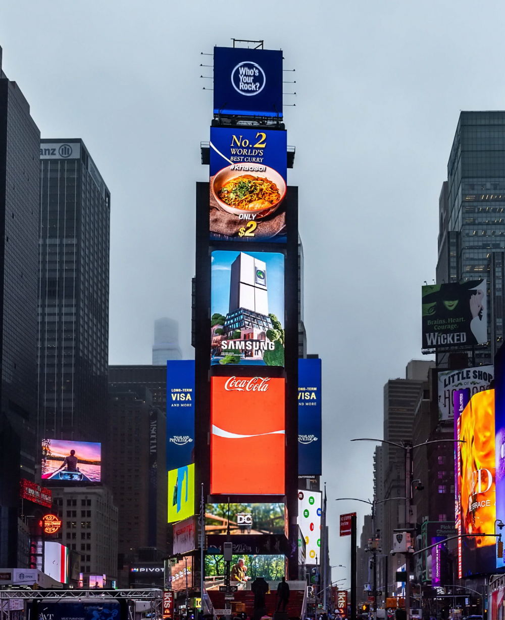 삼성전자는 미국 뉴욕 타임스스퀘어에서 ‘비스포크 AI 패밀리허브’ 냉장고의 AI 비전 인사이드 기능을 참신하게 표현한 영상으로 옥외광고를 진행했다.