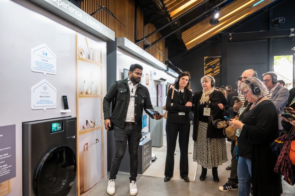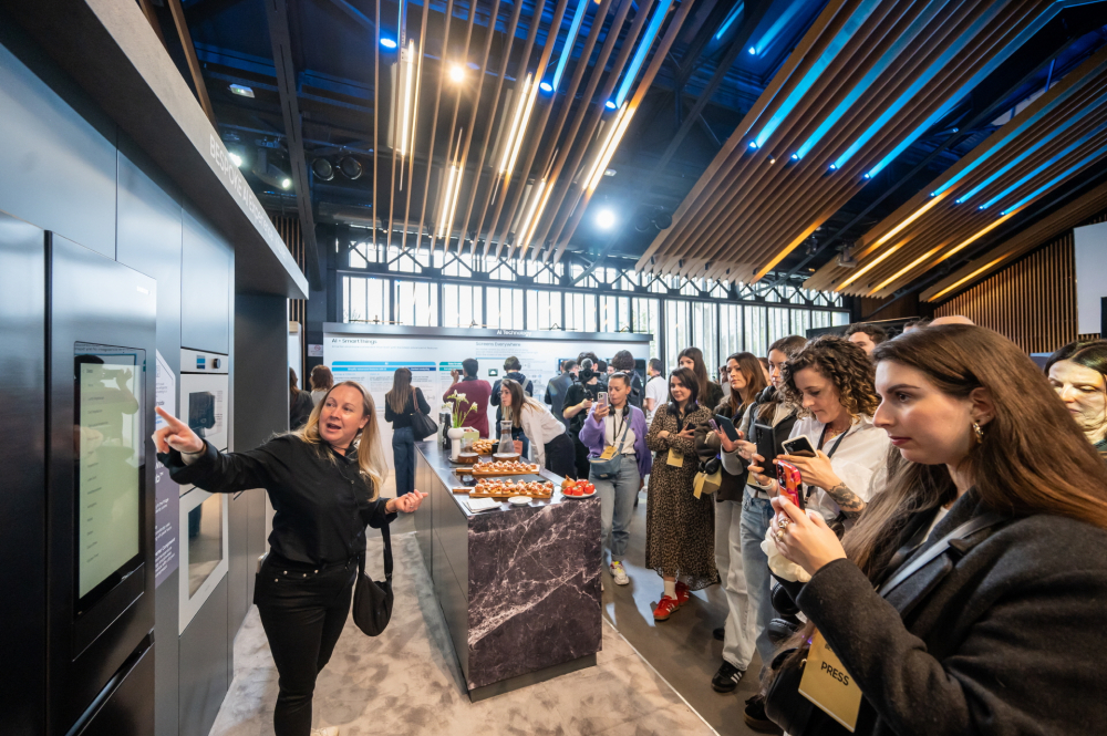 ▲ 3일(현지시간) 파리 불로뉴 공원에서 열린 삼성전자 ‘비스포크 AI 미디어데이’에서 참석자들이 비스포크 AI 신제품을 살펴보고 있다.