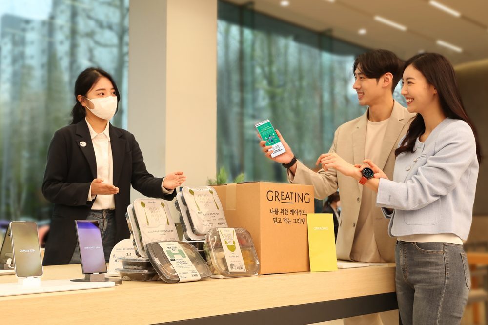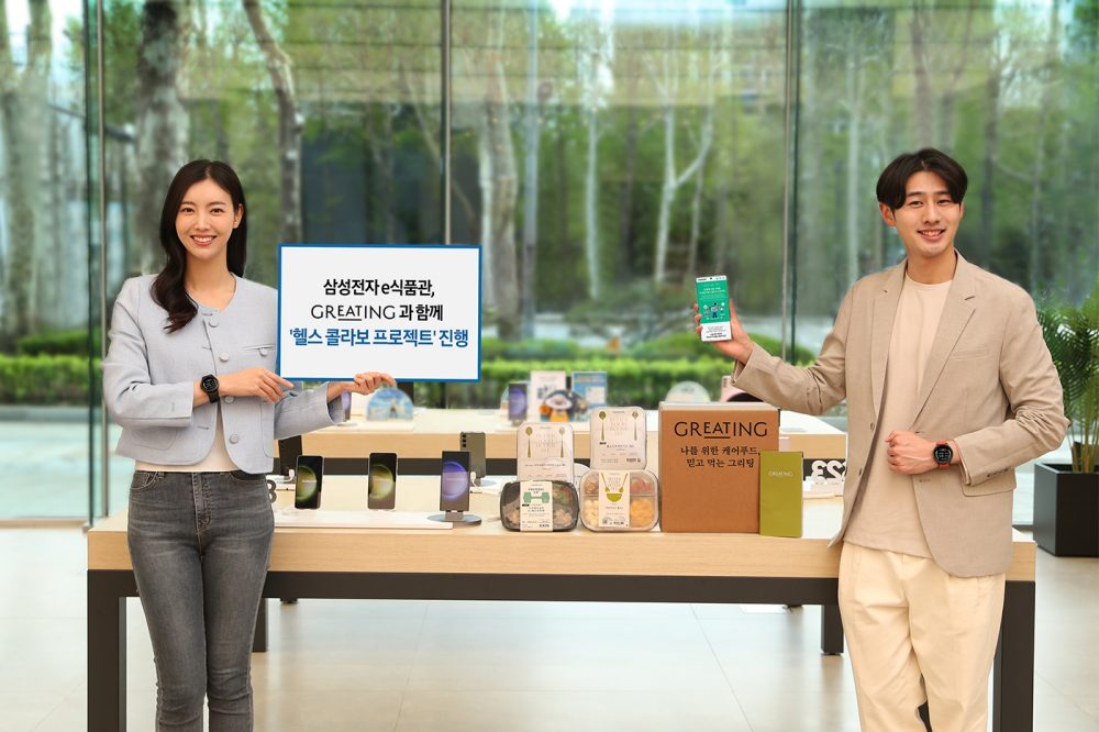 삼성전자가 삼성닷컴의 ‘e식품관’에서 일상 속 건강 관리 트렌드를 새롭게 제시할 ‘헬스 콜라보 프로젝트’를 17일부터 진행한다. 삼성전자는 이 프로젝트를 위해 갤럭시 워치와 삼성 헬스 앱을 활용하고 현대그린푸드의 건강식 ‘그리팅’과 협력했다.