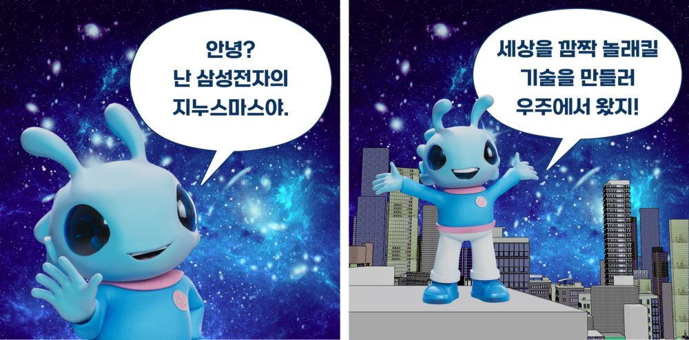 ▲투닝 앱으로 삼성전자의 버추얼 아바타 ‘지누스마스’의 이미지를 활용해 제작한 툰