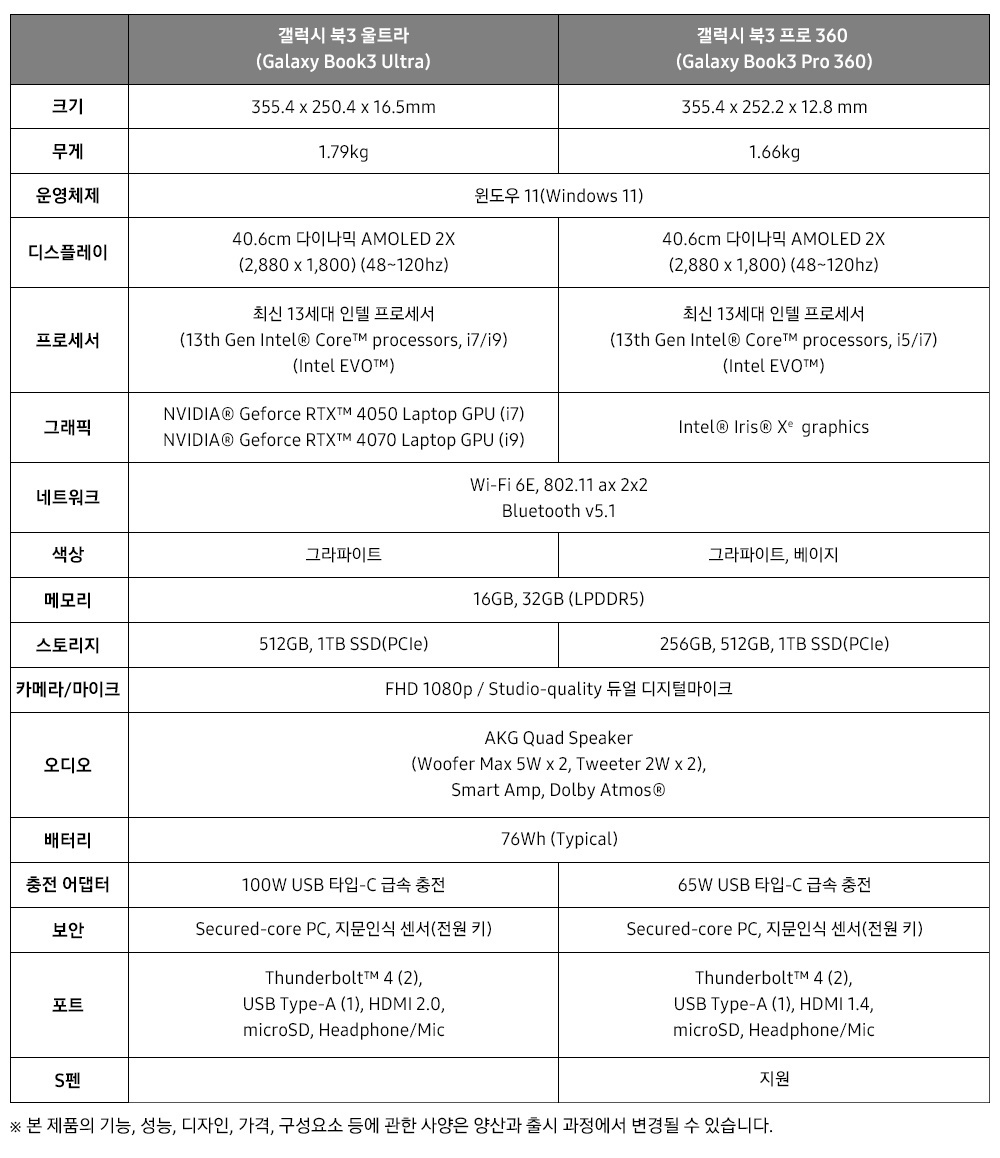 한편 갤럭시 북3 시리즈는 갤럭시 스마트폰에 사용되는 ‘다이나믹 AMOLED 2X’ 디스플레이를 시리즈 최초로 도입했다.