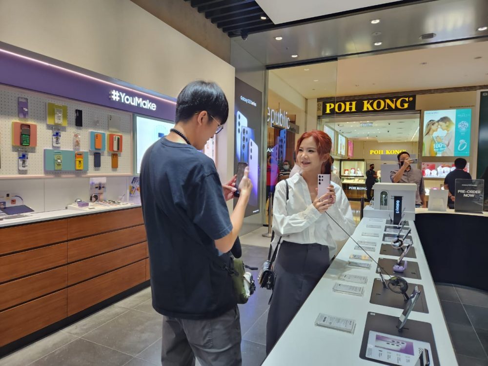 ▲15일(현지시간) 말레이시아 쿠왈라룸푸르에 위치한 삼성 익스피리언스 스토어에서 현지 소비자들이 갤럭시 S23의 혁신기능을 체험하고 있다.