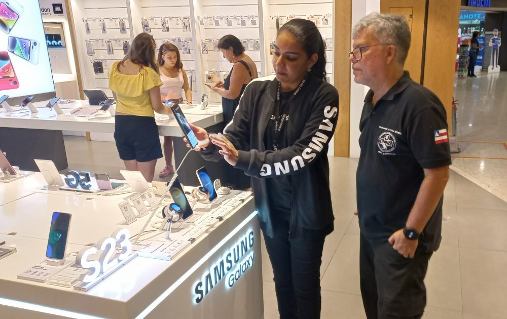 ▲15일(현지시간) 브라질 상파울로 위치한 삼성 익스피리언스 스토어에서 현지 소비들이 갤럭시 S23의 혁신기능을 체험하고 있다.