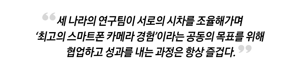이번 UDC 연구개발을 위해 미국의 SRA와 인도의 SRI-B, 그리고 한국에 있는 MX사업부 비주얼 소프트웨어 개발 그룹이 협업을 진행했다. 서로의 시차를 조율해가며 복잡한 프로젝트를 기한 내에 성공적으로 달성했다. ‘최고의 스마트폰 카메라 경험’이라는 공동의 목표를 위해 함께 협업하고 성과를 내는 과정은 항상 즐겁다.