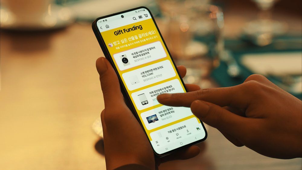 ▲ 펀딩 참여자 지인이 ‘세상 모든. 축하의 순간엔 기프트 펀딩(Gift Funding)’ 캠페인에 참여해 ‘비스포크 AI 패밀리허브’를 선물하고 있다.