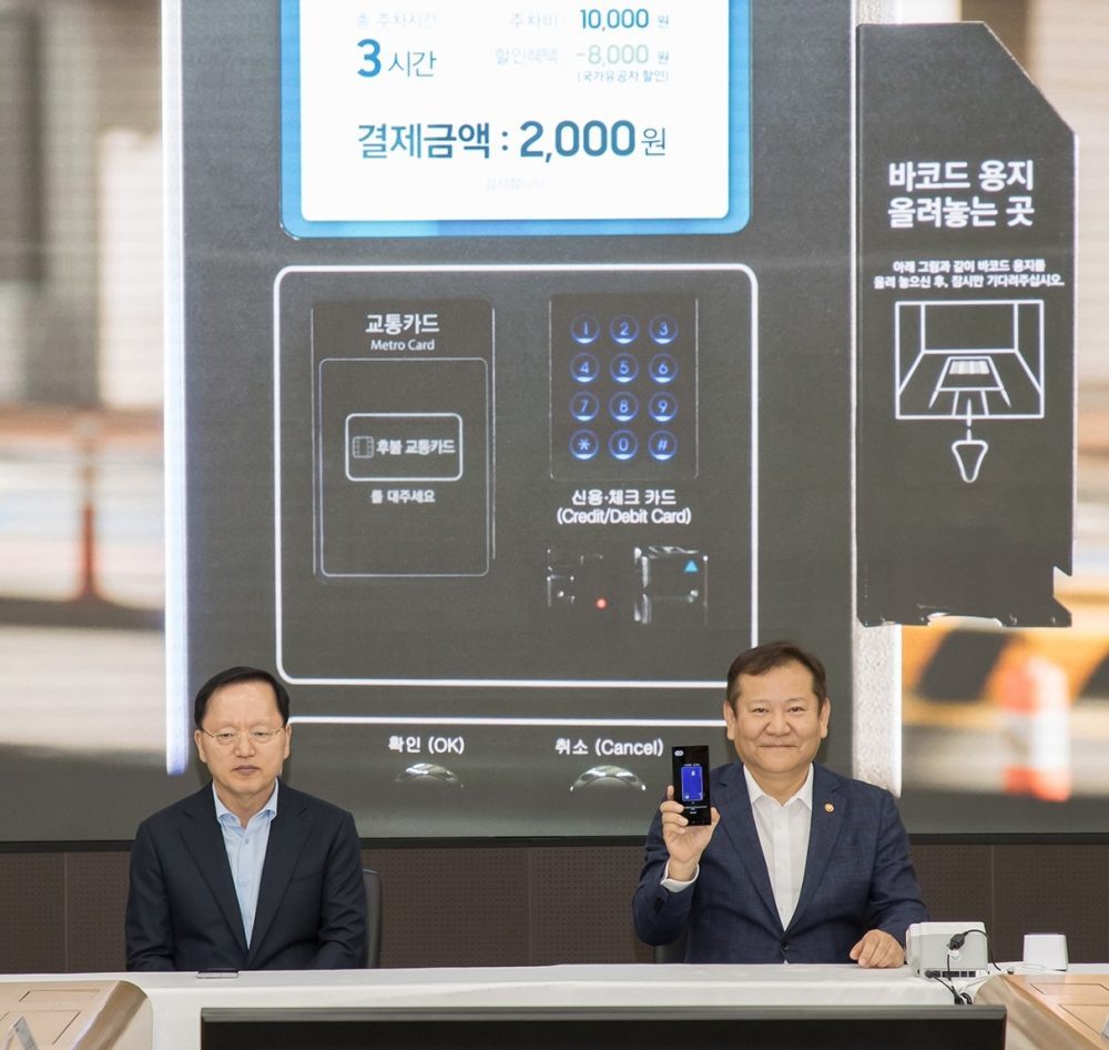 ▲행정안전부 이상민 장관(사진 우측)과 삼성전자 경영지원실장 박학규 사장(사진 좌측)이 업무 협약서에 서명 후 기념 촬영하는 모습