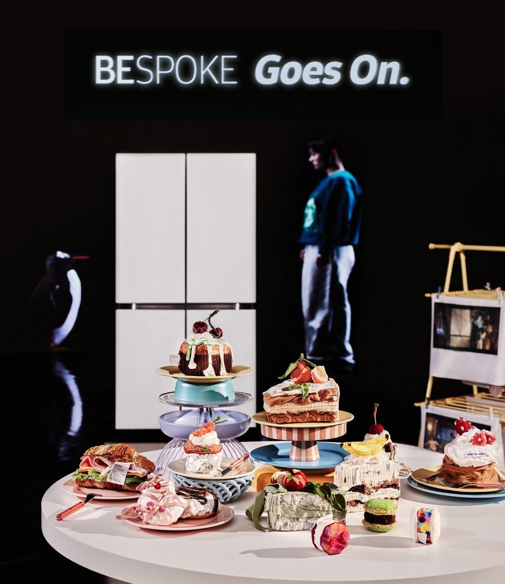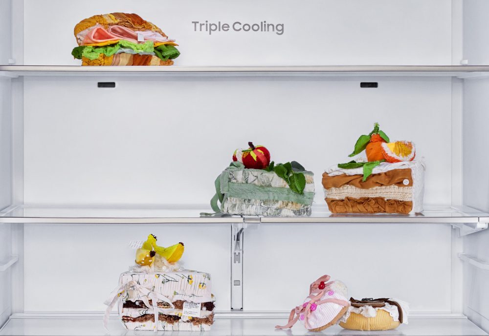 ▲ 삼성전자가 이규한·김은하 작가와 협업해 비스포크 냉장고 광고 세트장·의상을 업사이클링한 아트 작품을 선보였다. 김은하 작가가 광고 촬영에 사용한 의상들로 케이크, 도넛 등 다양한 식재료와 디저트를 모티브로 만든 작품 이미지