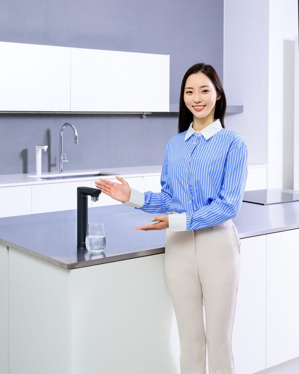 ▲삼성전자 모델이 경기도 수원시에 위치한 삼성전자 수원 디지털시티에서 비스포크 정수기 신제품을 소개하고 있다.