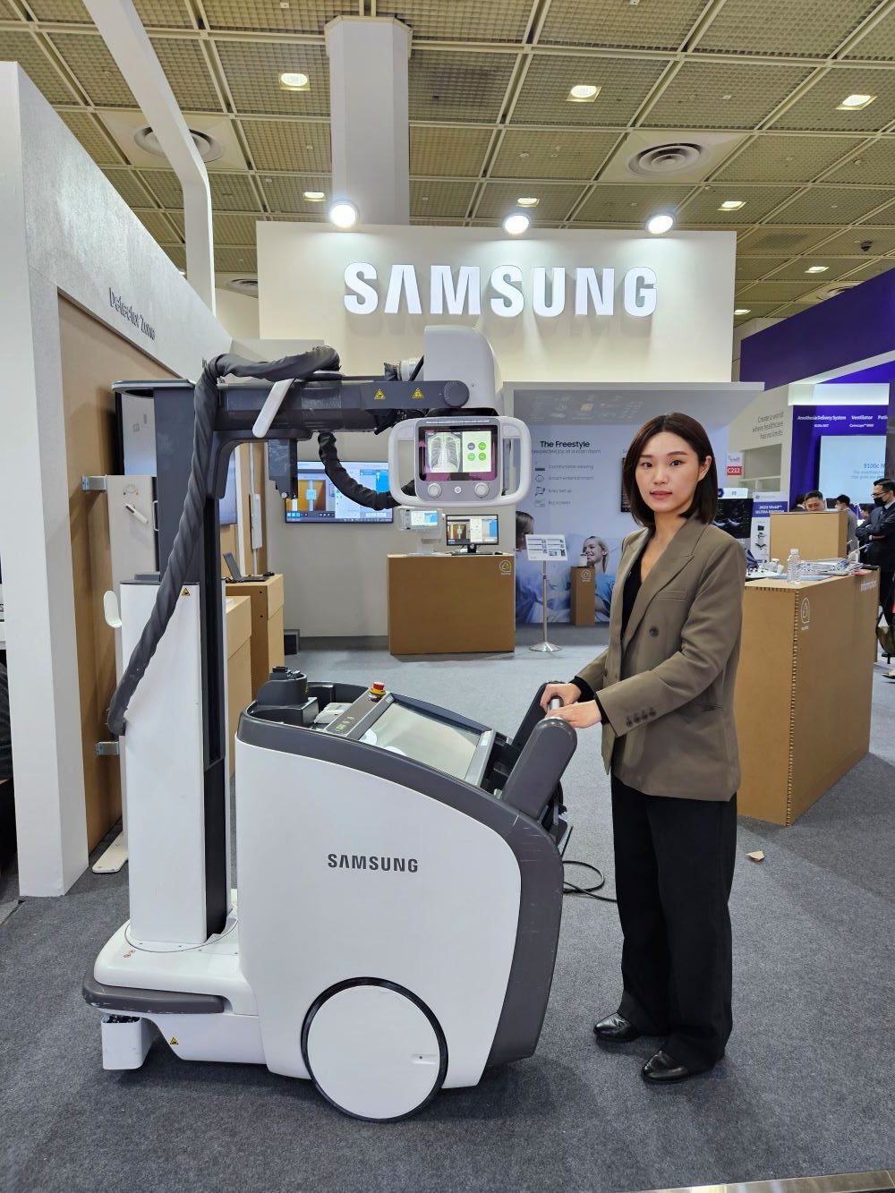 ▲ 삼성 직원이 23일 서울 삼성동 코엑스에서 열린 ‘제 38회 국제의료기기·병원설비전시회’ 삼성 부스에서 이동형 엑스레이 ‘AccE GM85’를 선보이고 있다.