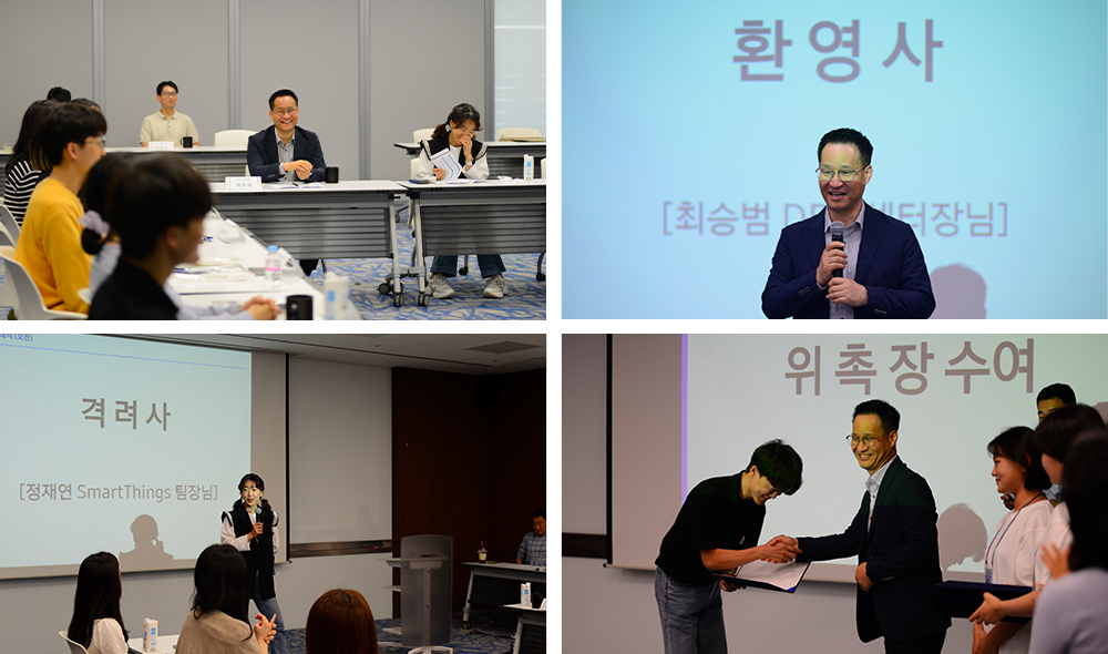 ▲ 최승범 디바이스플랫폼센터장, 정재연 SmartThings 팀장의 환영사, 격려사, 위촉장 수여