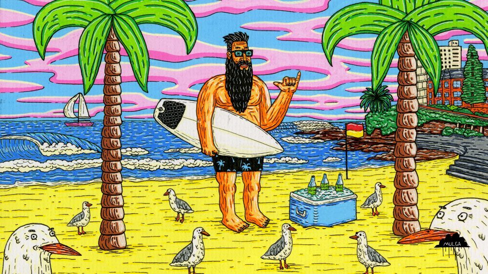 지난달, 포트 맥쿼리(Port Macquarie)에 위치한 해변에서 100미터 길이의 벽화를 그린 것이 좋은 추억이 되었다. 개인적으로 바닷가와 여름, 서핑을 좋아해서 작업하기 최적의 장소였다. 한번은 그림을 그리고 있는데 파도가 쳐서 벽에 그린 그림이 씻겨 나가기도 했다. 밀물과 썰물을 생각해서 그림을 그려야 했는데 그러한 변수가 오히려 더 즐거웠다.