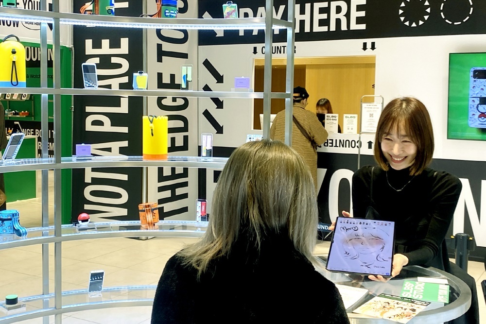 ▲ ‘삼성 에코 프렌즈’ 팝업스토어에서 MZ세대 아티스트 ‘수와’ 작가가 S펜 라이브 드로잉을 선보이는 모습
