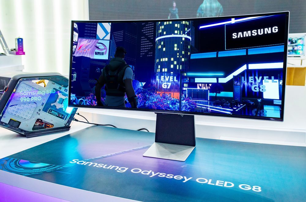 ▲오디세이 유니버스는 오디세이 제품명에 맞춰 레벨 아크∙G9∙G8∙G7∙G6, 총 5개의 공간으로 구성되어 있다. 사진의 제품은 34형 크기의 오디세이 OLED G8으로 울트라와이드 QHD해상도, 1800R 곡률, 175Hz 주사율, 초슬림 메탈 디자인 등 다양한 매력으로 게이머들을 사로잡는다.