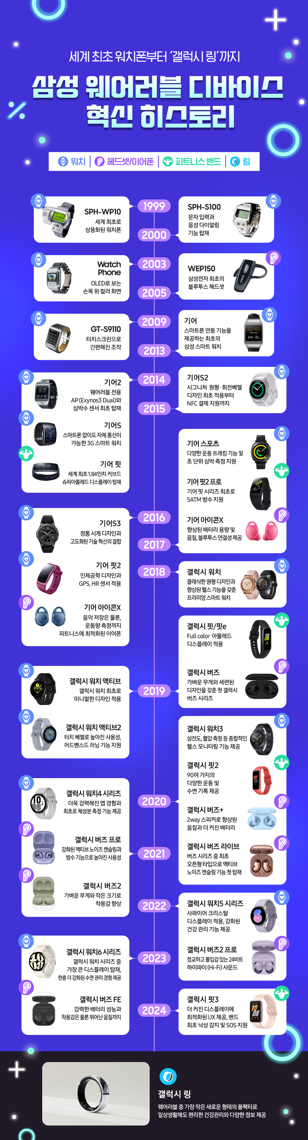 세계 최초 워치폰부터 ‘갤럭시 링’까지, 삼성전자 웨어러블 디바이스의 혁신적인 역사를 아래 인포그래픽으로 확인해 보자.