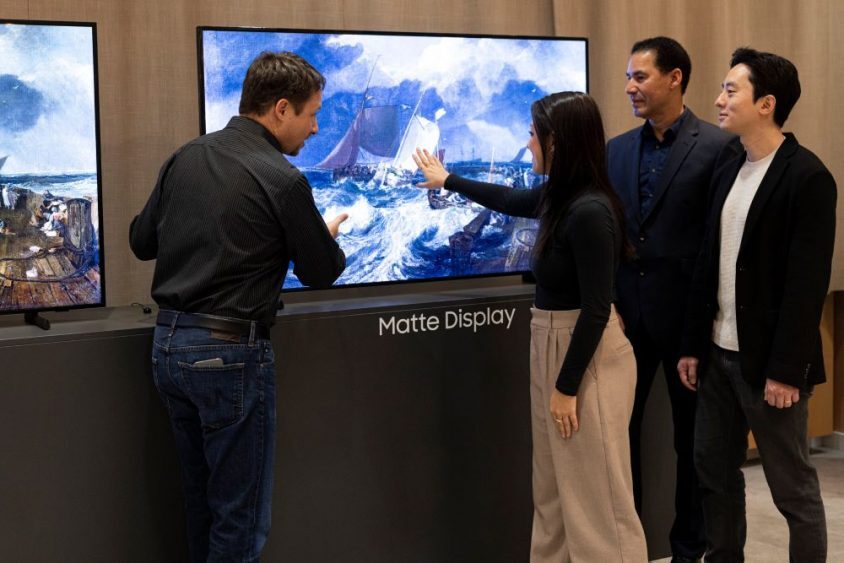▲ 2월 23일(현지시간) 독일 프랑크푸르트에 위치한 삼성전자 독일법인에서 열린 ‘2023 유럽 테크세미나’ 참석자들이 삼성전자의 ‘매트 디스플레이’를 탑재한 ‘더 프레임’ 신제품을 살펴보고 있다.