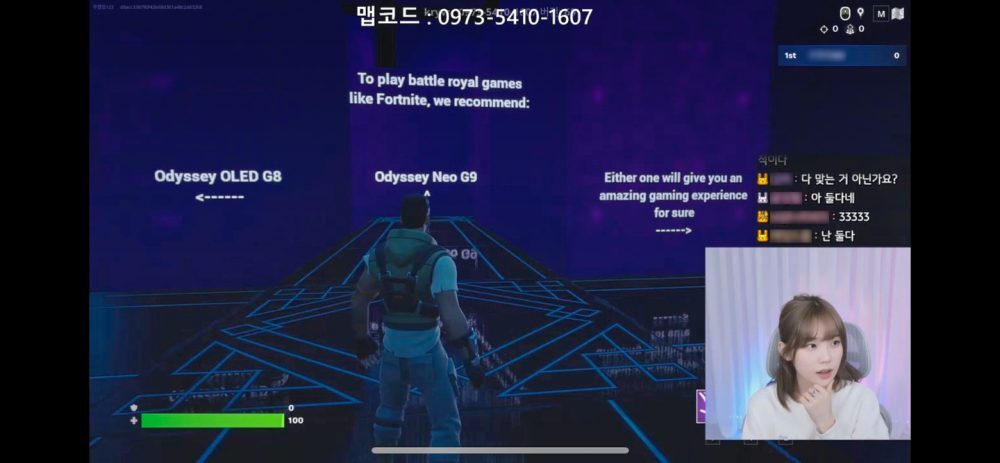 ▲ 게임 스트리머 ‘우정잉’이 ‘오디세이 Neo G8으로’ 포트나이트 ‘오디세이 유니버스’ 맵을 플레이하고 있다.