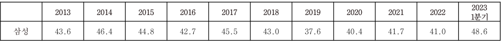 《 삼성전자 국내 에어컨 시장 점유율,(단위: %) 》