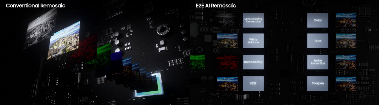 E2E AI 리모자이크는 리모자이크와 이미지 신호 처리(ISP)가 동시에 이루어지도록 해서 프로세스를 향상시키는 방식이다.