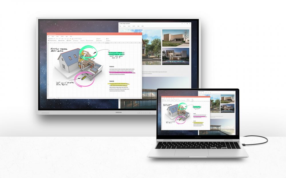 이외에 ▲최대65W 충전이 가능한 USB-C 포트 ▲최대 9개까지 IT 기기 동시 무선 연결 ▲강당 등 대형 스크린 사용 환경에 화면 복제가 가능한 HDMI Out ▲PIP(Picture in Picture)∙PBP(Picture By Picture) ▲여러 개의 창을 동시에 띄울 수 있는 멀티윈도우 ▲전면 고음질 스테레오 스피커 ▲전용 펜과 자석 펜 홀더 등 스마트 학습을 위한 기능도 강화하는 등 사용 편의성을 극대화했다.