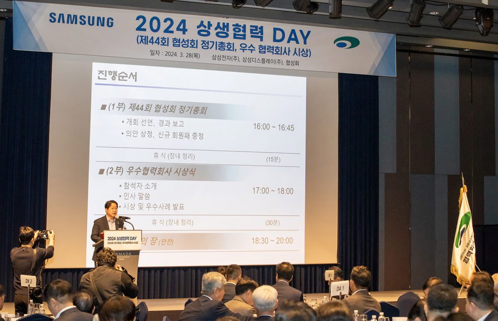 삼성전자는 28일 수원 라마다 호텔에서 협력회사 협의회(협성회)회원사들과 함께 ‘2024년 상생협력 DAY’를 개최했다.