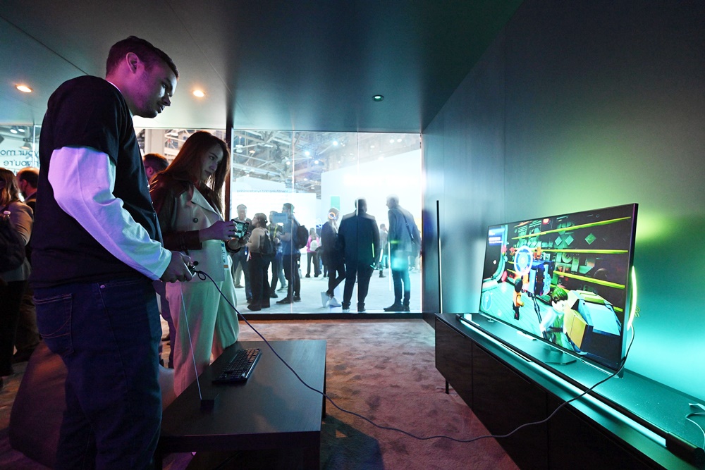 ▲ 삼성전자는 흥미로운 엔터테인먼트 경험을 제공하는데 진심이다. 사진은 스마트 조명 브랜드 ‘필립스 휴(Philips Hue)’의 제품과 연동해 보다 생동감과 몰입감 넘치는 환경을 경험할 수 있는 ‘뮤직 싱크(Music Sync)’ 부스(위), ‘게임 앤 비디오 싱크(Game & Video Sync)’ 부스(아래). 특히, 갤럭시 모바일의 특화 기능인 ‘뮤직 싱크(Music Sync)’는 필립스 휴 조명과 연동해 갤럭시에서 재생되는 음악에 맞춰 조명의 밝기, 색상, 템포를 자동 조정하고, 스피커를 자동으로 연결하는 등 음악 감상에 최적화된 환경을 조성한다.