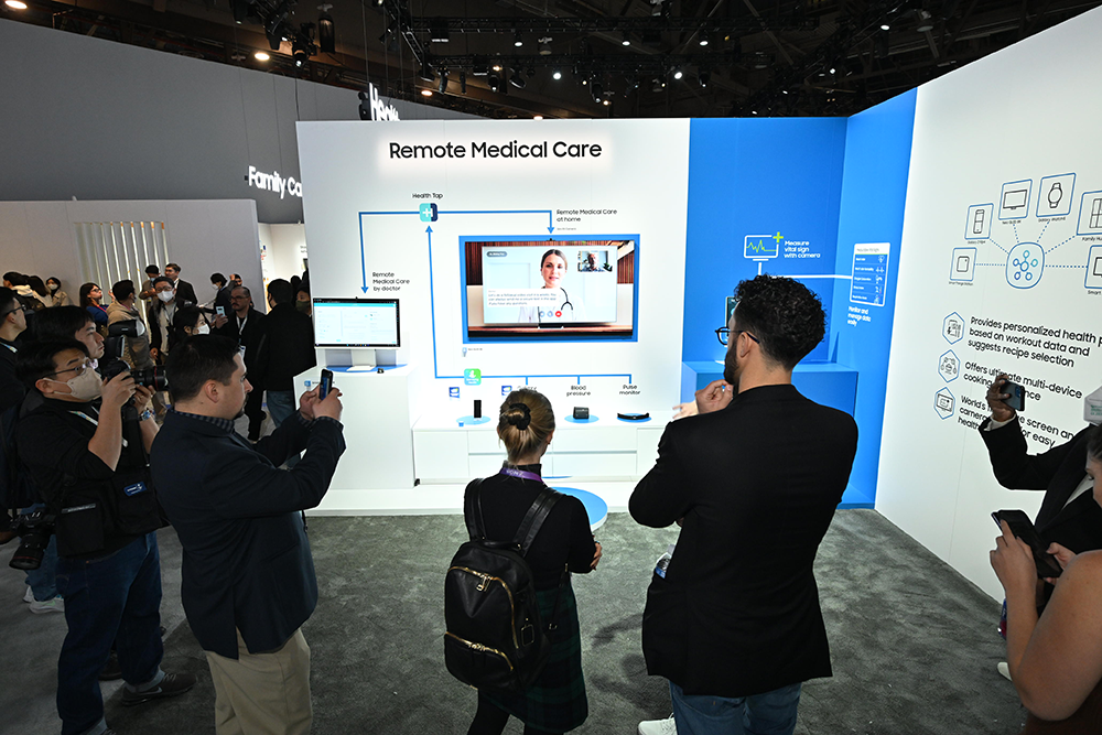 ▲ 관람객들이 스마트싱스의 ‘원격 메디컬 케어(Remote Medical Care)’ 부스를 살펴보고 있는 모습.