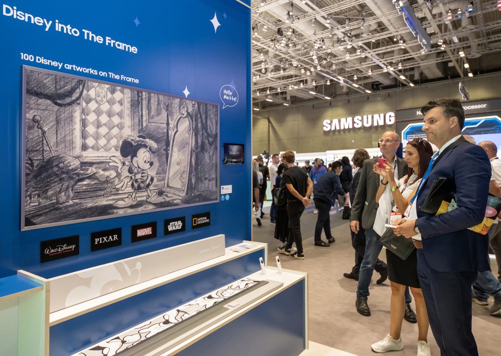 ▲ 관람객들이 ‘더 프레임 디즈니100주년 에디션’을 둘러보고 있다. 스페셜 에디션 전용 월트 디즈니의 아트 콘텐츠가 적용됐다